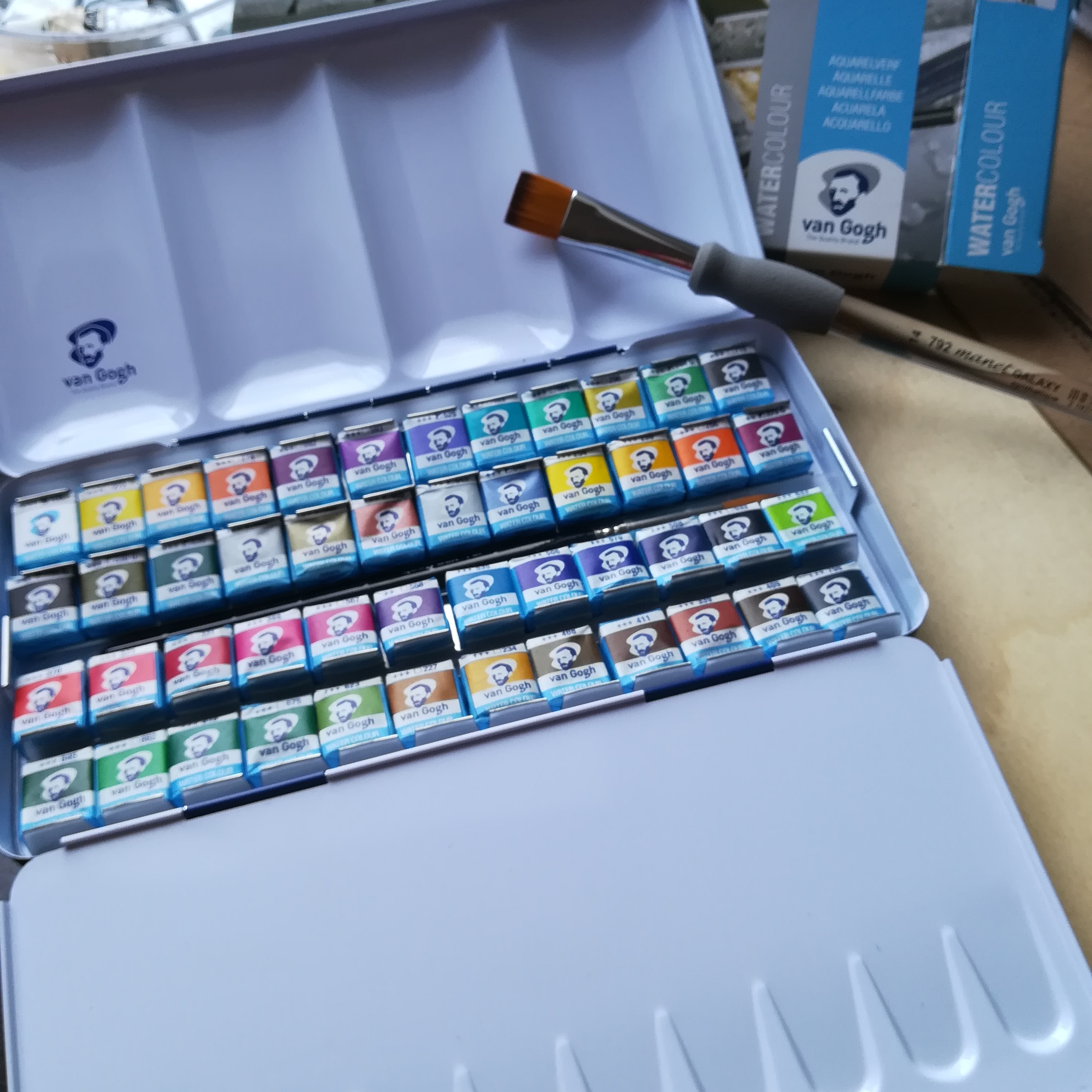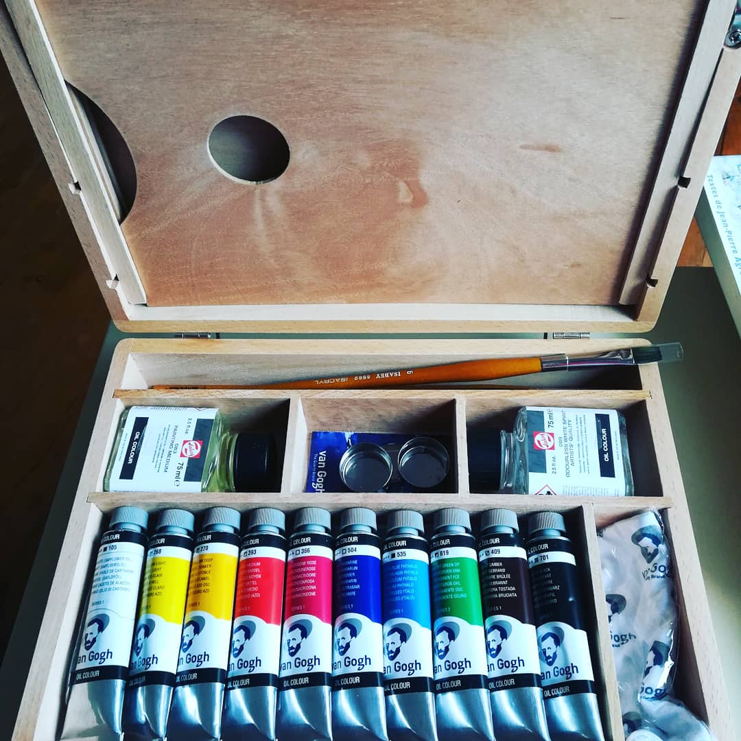 Mon matériel pour les oeuvres à l'HUILE . J'utilise souvent la marque Van Gogh que je trouve assez qualitative.